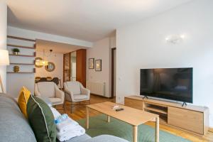 Внутри апартаментов - две отдельные спальни и две собственные ванные комнаты с фенами. Гостиная оборудована комфортной зоной отдыха с телевизором, по всему помещению уложен деревянный пол, создающий теплую атмосферу. Полностью укомплектованная кухня оснащена современной техникой: духовкой, плитой, холодильником, микроволновкой, кофемашиной, тостером и электрическим чайником, также предусмотрена необходимая посуда и обеденный стол.