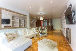 L’appartamento comprende quattro camere da letto arredate con un totale di otto letti e tre bagni dotati di vasca, doccia, bidet, asciugacapelli e set di cortesia gratuito comprendente shampoo e sapone per il corpo. La cucina completamente attrezzata dispone di forno, piano cottura, frigorifero, lavastoviglie, microonde, tostapane oltre ad angolo tè e caffè. Tra i comfort aggiuntivi in camera: aria condizionata regolabile singolarmente in ogni stanza, riscaldamento, asciugamani, biancheria da letto, cassaforte, guardaroba, zona soggiorno, lavatrice, cuscini non piuma, stendibiancheria, ferro da stiro, lettino/baby cot,culla supplementare/letto extra divano pavimenti in piastrelle o marmo.
