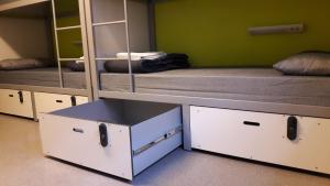 Ubytování zahrnuje lůžka ve smíšených, ženských i mužských společných pokojích s bezpečnostními schránkami a vlastní koupelnou, stejně jako soukromé pokoje s jedním nebo dvěma jednolůžky. Ve všech pokojích jsou ložní prádlo, ručníky jsou k dispozici v soukromých pokojích nebo k zapůjčení ve společných noclehárnách. Každý pokoj má individuálně ovládanou klimatizaci, topení, trezor, zásuvky u postele a vlastní koupelnu vybavenou sprchou a vysoušečem vlasů.