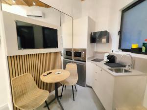 Este estudio con aire acondicionado ofrece una entrada privada e incluye una cama junto con un armario y suelo de baldosa para mayor comodidad y estilo. La cocina americana totalmente equipada dispone de electrodomésticos esenciales como placa vitrocerámica, frigorífico, microondas, tostadora, cafetera y hervidor eléctrico para cubrir todas las necesidades culinarias. Un televisor de pantalla plana complementa el espacio salón mientras que la calefacción garantiza confort durante los meses más fríos.