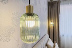 Uvnitř má ubytování dva pokoje spolu s obývacím pokojem vybaveným sedací soupravou včetně pohovky a rozkládací pohovky. Plně vybavená kuchyň disponuje kuchyňským koutem se základním nádobím, troubou, varnou deskou, lednicí, myčkou nádobí, mikrovlnnou troubou, toustovačem chleba, kávovarem i rychlovarnou konvicí včetně čajových i kávových doplňků. Další zařízení zahrnují pračku, žehlicí potřeby jako žehlící prkno a žehličku, ložní prádlo, ručníky, topení, klimatizaci, šatní skříň nebo skříň na oblečení, psací stůl, dětskou postýlku nebo kolébku, televizor s plochou obrazovkou a fén na vlasy.