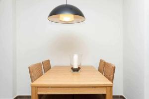 The air-conditioned apartment comprises one bedroom with two beds, a separate living room fitted with a sofa and television, as well as one bathroom featuring both a bathtub and shower along with shampoo and body soap provided. Guests can enjoy a fully equipped kitchen that includes a refrigerator, oven, stovetop, microwave, toaster, dishwasher, coffee machine, kitchenware essentials, dining table setup and even a tumble dryer for clothes.