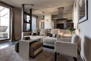 В апартаментах есть полностью оборудованная мини-кухня с посудомоечной машиной, духовкой, холодильником, микроволновой печью, тостером и принадлежностями для приготовления чая и кофе. Для приёма пищи предусмотрён обеденный стол. В распоряжении гостей три кровати - две в отдельных спальнях и раскладной диван в гостиной зоне. Предоставляются кондиционер, отопление, утюг с гладильной доской, сушилка для одежды и зона отдыха, свежие полотенца и постельное бельё включены.